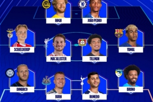 体育资讯1月30日讯 欧冠联赛阶段上演大结局,最后一轮比赛有多名球员发挥了非常关键的作用。欧足联官方评选出了本轮最佳阵,亚马尔、若昂·佩德罗、迪马尔科、特鲁宾入选。